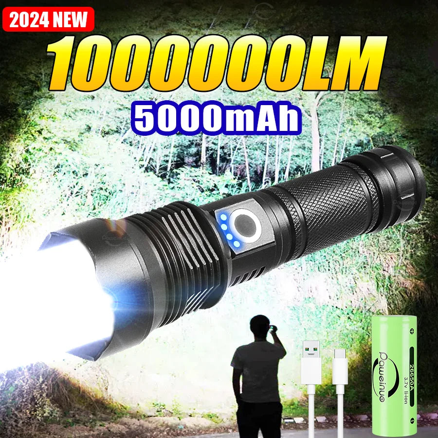 1. Using the latest super powerful 100W wick, it has higher light intensity and better focusing effect than traditional LED. 1000000LM, can produce a brighter beam with a longer irradiation distance, up to 2000m. Retractable zoom with square focus.