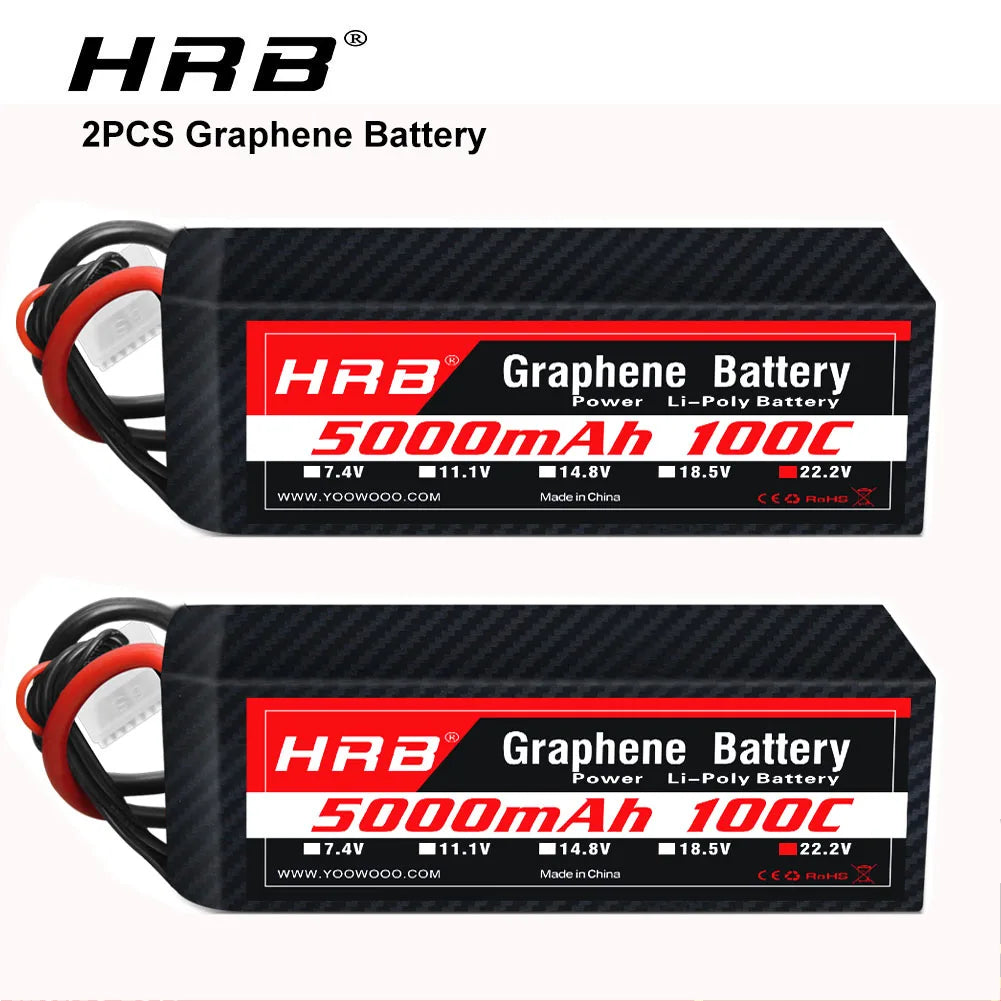 2PCS HRB Graphene Battery 6S Lipo battery 22.2V 3300mah 4000mah 5000mah 6000mah 100C with XT90 EC5 connector For RC Car Drone helicopter