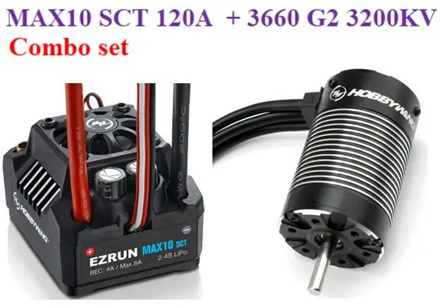 Hobbywing EZRUN MAX10 SCT 120A Brushless ESC + 3660 G2 3200KV/ 4000KV/4600KV Sensorless Motor Combo Set for 1/10 RC Car