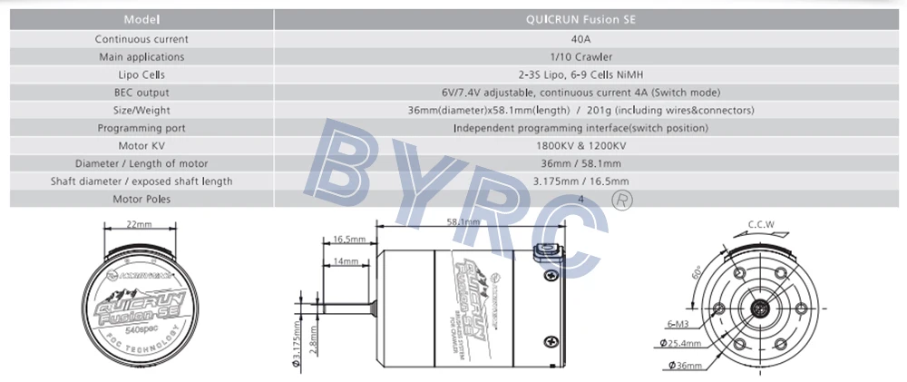 1*QuicRun Fusion SE 40A 1200KV/1800KV Sensored Brushless Motor