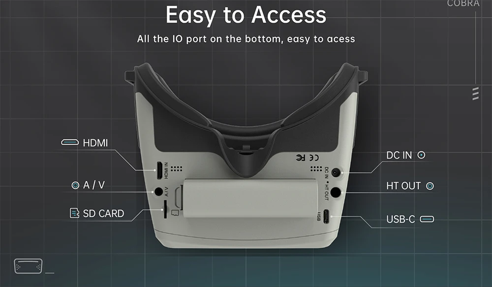 The SKYZONE Cobra is a FPV goggle with LCD screen , the screen have vivid color and high luminance , pilot can see more details in the racing . With RapidMix receiver, the receiver merge two signal to one, avoid image tearing and rolling when signal is weak, make image more stable and clear in challenging condition. The goggle support pilot wear glass while fling. The new OS with several languages to set select, pilot have no trouble with the menu system, with shuttle wheel and new user interface, pilot can set all the setting just by rolling the wheel without taking off the goggle. The goggles can Power by 1 cell battery or 2~6s lipo battery, the USB charging and DC charging make goggle simple to use in the filed.