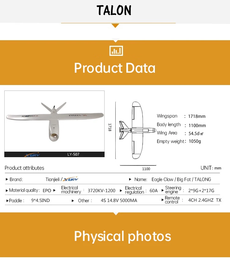 X-UAV Big Fat Talon FPV Remote Control Plane RC Airplane Drone