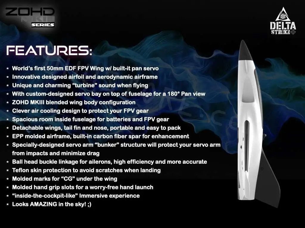 1x ZOHD Delta Strike 600mm EPP 50mm EDF Jet FPV Flying Wing KIT